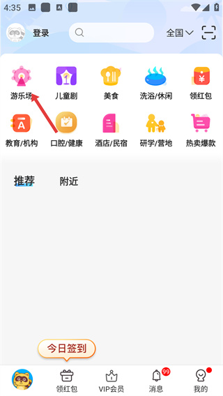 1、在主頁面找到并點(diǎn)擊“游樂場”選項(xiàng),進(jìn)入游樂場分類頁面,可查看戶外、室內(nèi)、爆款等類型的游樂項(xiàng)目。