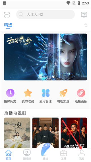 3、集成各大視頻平臺資源庫,可將網(wǎng)絡(luò)上的新鮮熱門影視內(nèi)容一鍵推送至電視大屏,供全家共同觀賞。