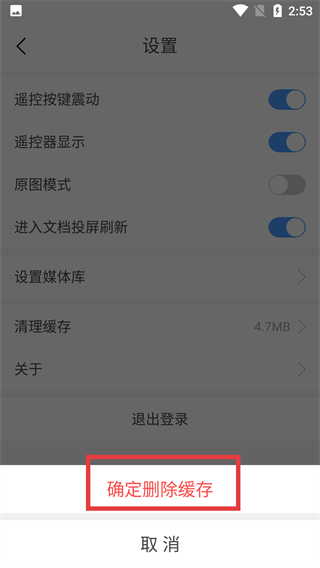 3、在設(shè)置頁面里,點擊“清理緩存”選項,觸發(fā)緩存清理的確認彈窗,準備執(zhí)行緩存清理流程。