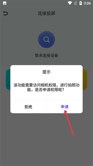 3、在彈出的相機權限申請?zhí)崾局?,點擊“申請”選項,完成功能所需權限的授予,以便繼續(xù)后續(xù)操作。