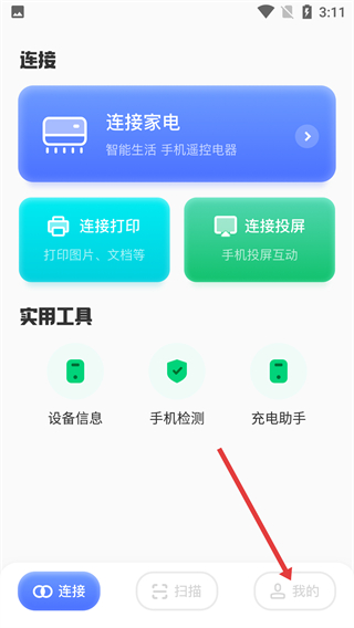2、在連接頁面,點擊底部功能欄的“我的”選項,進入個人中心頁面,查看相關(guān)功能入口。