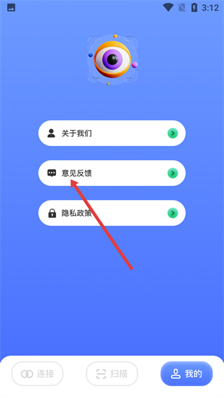 3、在個人中心頁面,點擊“意見反饋”選項,進入反饋信息填寫界面。