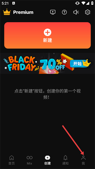 1、在Kinemaster的“創(chuàng)建”頁面,點擊底部功能欄的“我”選項,進入賬戶相關(guān)操作界面。