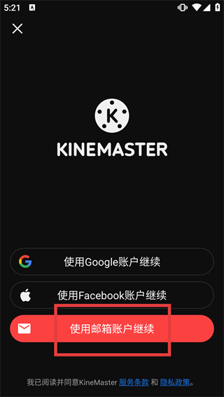 2、在賬戶登錄選擇界面,點擊“使用郵箱賬戶繼續(xù)”選項,進入登錄頁面。