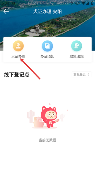 3、進入對應城市的辦理界面后,找到【犬證辦理】選項并點擊,可進入具體的養(yǎng)犬資格認證相關準備頁面。