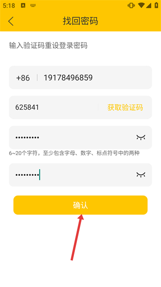 4、在【找回密碼】頁面填完后,點擊【確認】按鈕,即可完成密碼重置的操作流程。