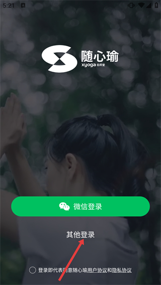 2、在【隨心瑜】登錄選擇頁,點擊【其他登錄】選項,可進入包含手機號-驗證碼等信息的登錄填寫界面。