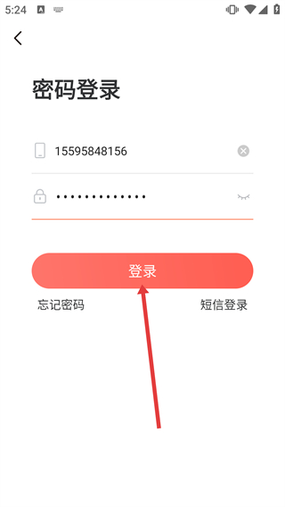 4、在【密碼登錄】頁面,填好手機號-登錄密碼后,點擊【登錄】按鈕,即可完成該方式的登錄操作。