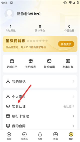 2、進入【我的】頁面,可查看【公告】【系統(tǒng)通知】【作家學院】等功能入口,管理個人相關的作家助手內容。