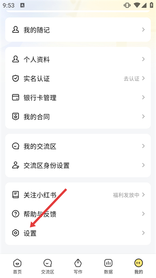 2、在【我的】頁面中找到【設(shè)置】選項并點擊,進(jìn)入設(shè)置界面,可進(jìn)行賬號-推送等相關(guān)配置操作。