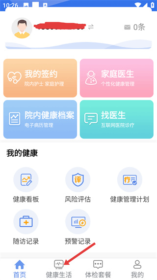 1、在首頁(yè)點(diǎn)擊底部【健康生活】選項(xiàng),進(jìn)入健康生活相關(guān)操作頁(yè)。