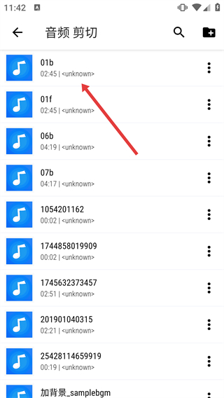2、進(jìn)入【音頻-剪切】界面后,選擇列表中的目標(biāo)音頻條目(如【01b】),進(jìn)入該音頻的剪切編輯界面。