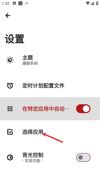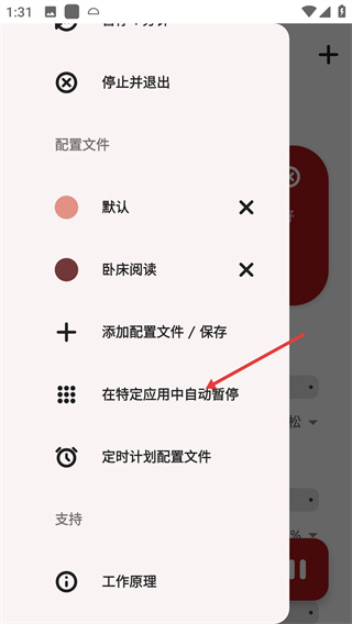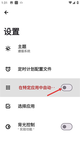 2、展開功能菜單后,找到【在特定應用中自動暫?!窟x項,點擊可進入對應設置頁面。