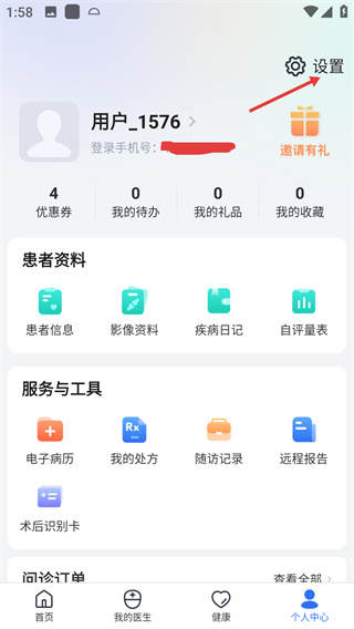 1、在【嘉醫(yī)有品】個(gè)人中心頁(yè),點(diǎn)擊右上角【設(shè)置】按鈕,進(jìn)入設(shè)置功能頁(yè)面。