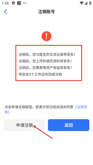 4、在【注銷(xiāo)賬號(hào)】頁(yè)面,確認(rèn)注銷(xiāo)后資料、權(quán)益丟失的提示,點(diǎn)擊【申請(qǐng)注銷(xiāo)】提交賬號(hào)注銷(xiāo)請(qǐng)求。
