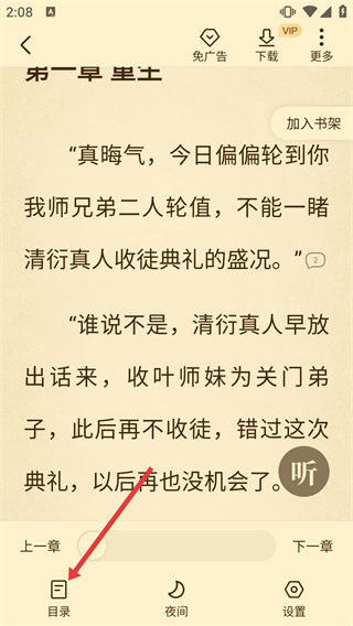 4、在閱讀界面底部,點(diǎn)擊【目錄】按鈕,可查看該作品的章節(jié)列表,方便進(jìn)行不同章節(jié)的跳轉(zhuǎn)閱讀。