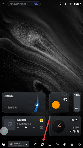 2、在布丁UI主界面,點(diǎn)擊功能區(qū)域可進(jìn)入主題選擇頁面,該界面包含【地圖導(dǎo)航】-【音樂播放】等功能卡片。