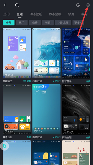 3、在主題選擇頁面,點(diǎn)擊右上角的【設(shè)置】按鈕,進(jìn)入對應(yīng)設(shè)置界面,可調(diào)整主題相關(guān)的配置選項(xiàng)。