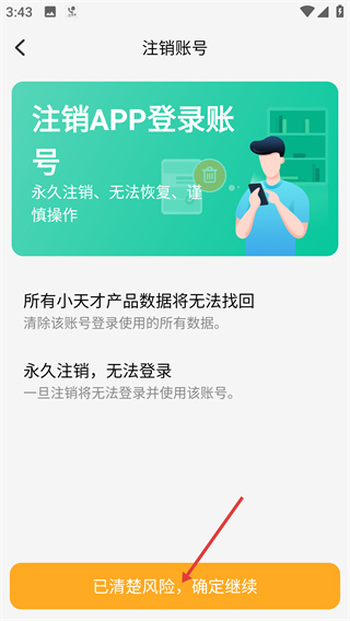 2、在注銷風(fēng)險提示頁點擊【已清楚風(fēng)險,確定繼續(xù)】按鈕,進入賬號注銷的身份驗證選擇頁面。