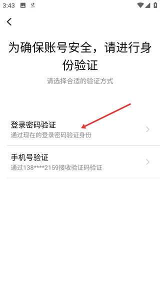 3、在身份驗證頁選擇【登錄密碼驗證】方式,進入輸入登錄密碼的身份驗證頁面。