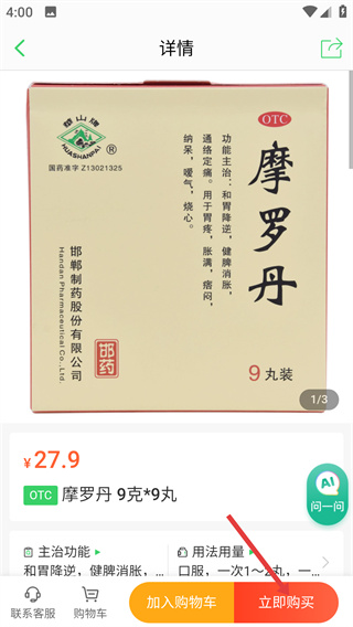 3、在藥品列表頁選擇對應(yīng)的藥品條目,進入該藥品的詳情介紹頁面,可查看藥品信息、價格等內(nèi)容。