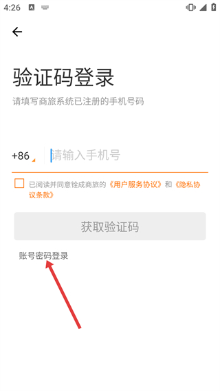 2、在驗證碼登錄界面,點擊【賬號密碼登錄】選項,切換至密碼登錄的操作頁面。