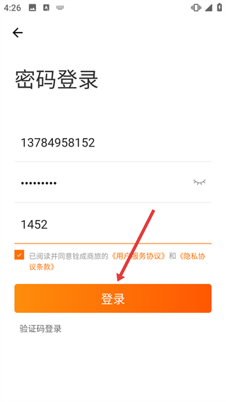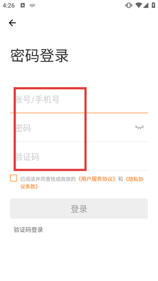 3、進入密碼登錄界面后,依次填寫【賬號/手機號】【密碼】【驗證碼】對應(yīng)的信息。