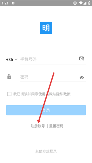 1、在登錄界面點(diǎn)擊【注冊(cè)賬號(hào)】選項(xiàng),可進(jìn)入【明道云】的賬號(hào)注冊(cè)流程頁(yè)面,開啟注冊(cè)操作。