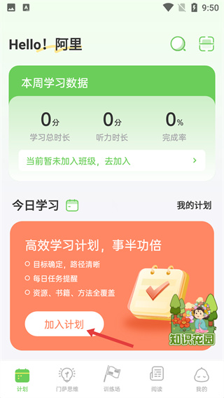 1、進(jìn)入“計(jì)劃”頁(yè)面后,點(diǎn)擊“高效學(xué)習(xí)計(jì)劃,事半功倍”板塊下的【加入計(jì)劃】按鈕,進(jìn)入全部計(jì)劃列表頁(yè)。