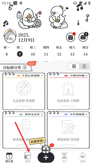 1、在計劃APP的“做計劃”主界面,點擊底部導航欄的【視圖】選項,進入視圖頁面。