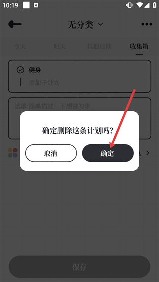 2、進入視圖頁面后,在“收集箱”板塊中找到“健身”計劃條目,點擊進入該計劃的詳情界面。