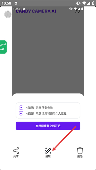 3、勾選“同意服務條款”“同意收集和使用個人信息”后,點擊【編輯】按鈕,進入圖片的編輯界面。