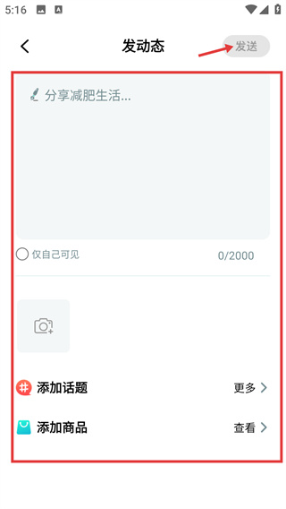 4、進(jìn)入【發(fā)動(dòng)態(tài)】頁面,填寫分享內(nèi)容、設(shè)置可見范圍、添加話題后,點(diǎn)擊【發(fā)送】即可完成動(dòng)態(tài)發(fā)布。