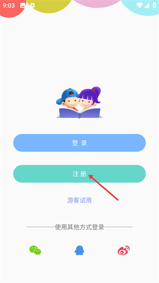 1、進入APP后,點擊【注冊】按鈕,進入注冊入口。