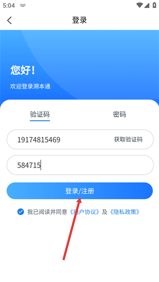 4、在【登錄】頁(yè)面填好【19174815469】手機(jī)號(hào)與【584715】驗(yàn)證碼,勾選協(xié)議后點(diǎn)擊【登錄/注冊(cè)】完成操作。