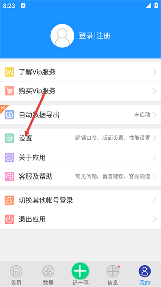 2、在【我的】頁面,找到【設(shè)置】選項,同時可查看【了解Vip服務(wù)】等功能,點擊進入設(shè)置界面。