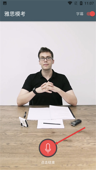 4、在雅思??甲鞔痣A段,點(diǎn)擊頁面麥克風(fēng)按鈕開始答題,完成后點(diǎn)擊【點(diǎn)擊結(jié)束】按鈕提交該題回答。