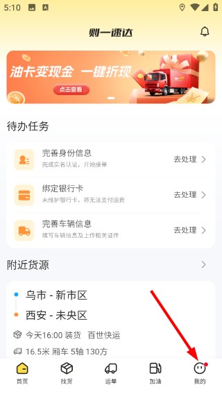 2、在則一速達(dá)首頁,點(diǎn)擊底部導(dǎo)航欄的“我的”選項(xiàng),進(jìn)入個(gè)人中心頁面。