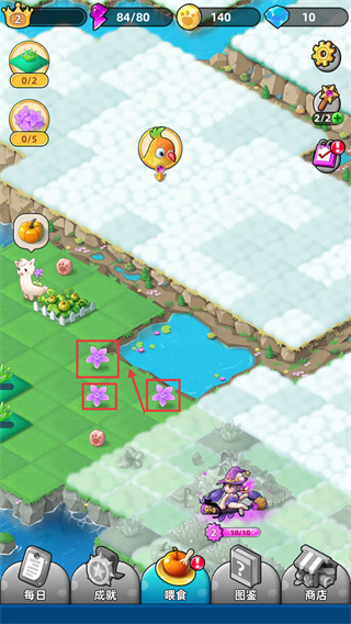 2、場景中收集【紫色花朵】,完成對應(yīng)收集任務(wù)(目標(biāo)【0/5】),可提升養(yǎng)成相關(guān)進(jìn)度。