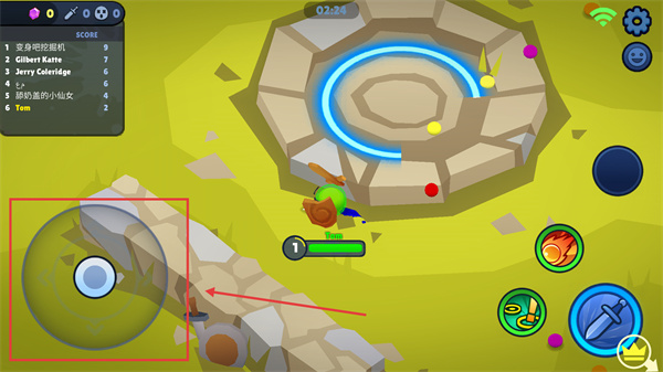 2、對局中使用左側(cè)【移動(dòng)搖桿】控制角色移動(dòng),收集場景內(nèi)道具提升得分。