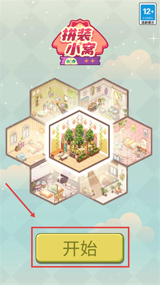 1、進入【拼裝小窩】后,點擊【開始】按鈕開啟游戲,先熟悉六邊形房間的布局框架。