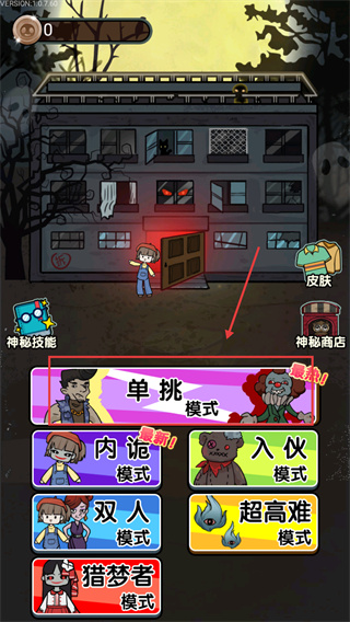 1、進(jìn)入界面后,可選擇【單挑模式】等玩法,同時(shí)能通過【神秘技能】【神秘商店】等功能獲取助力,開啟對(duì)局前先選定模式。