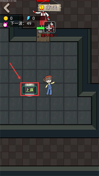 4、關(guān)卡中點(diǎn)擊【上床】可獲取資源,配合倒計(jì)時(shí)準(zhǔn)備應(yīng)對(duì)下一波獵夢(mèng)人,持續(xù)積累資源以提升對(duì)局優(yōu)勢(shì)。