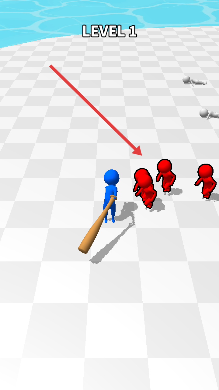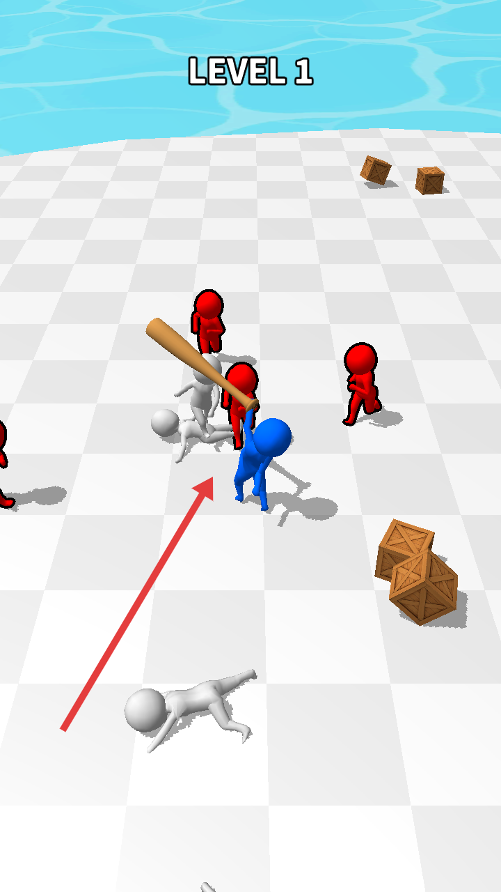 2、向紅色敵方角色發(fā)起攻擊,運用木棒的攻擊范圍和力度,有效削減敵方數量。