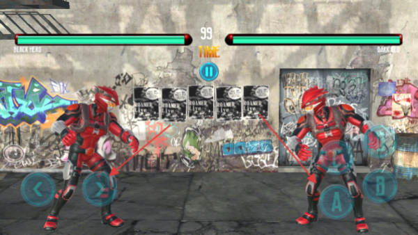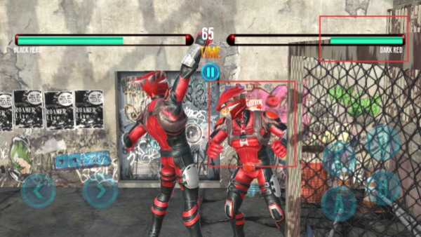 2、在格斗時,利用左側(cè)方向按鈕控制角色移動,右側(cè)“A”“B”等按鈕釋放攻擊技能,與對手展開近身搏斗。