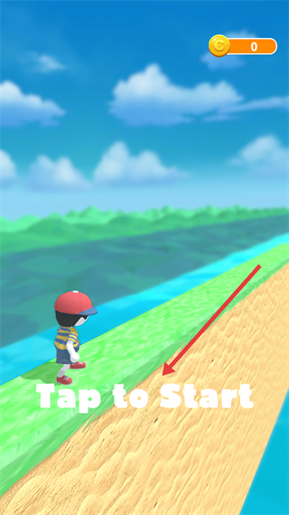 1、點(diǎn)擊TaptoStart,操控戴紅帽角色在河道旁的跑道場(chǎng)景中開啟游戲挑戰(zhàn),熟悉操作方式。