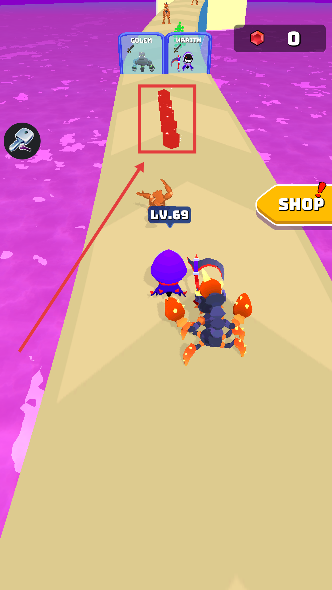 3、讓角色收集路徑上的紅色寶石,可用于商店獲取道具。