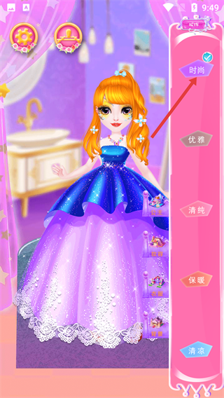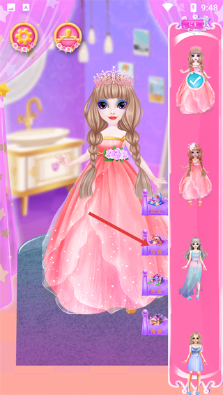 3、選中的服飾穿戴后會呈現(xiàn)輕微動態(tài),比如裙擺輕輕飄動、頭飾閃爍微光,讓公主形象更生動。