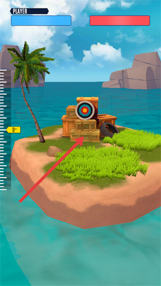1、觀察遠(yuǎn)處島嶼上的【靶心】,明確射擊目標(biāo)。