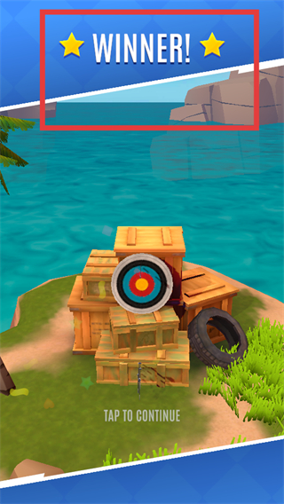 4、成功命中靶心擊敗對手后,將顯示【W(wǎng)INNER!】,點(diǎn)擊繼續(xù)挑戰(zhàn)下一局。